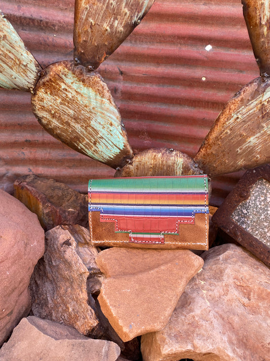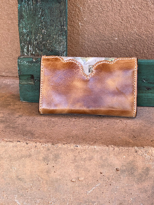Brindle Cowhide and Cactus Blossom Trifold Wallet