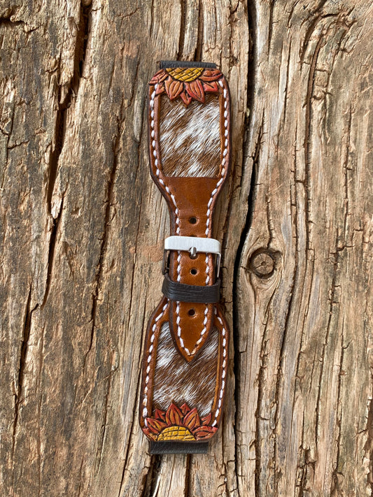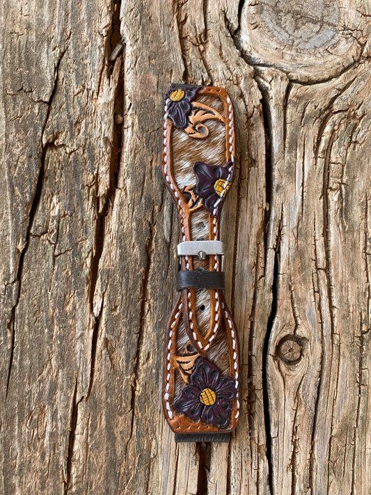 Tooled Orange Sunflower Watchband with leopard Inlay
