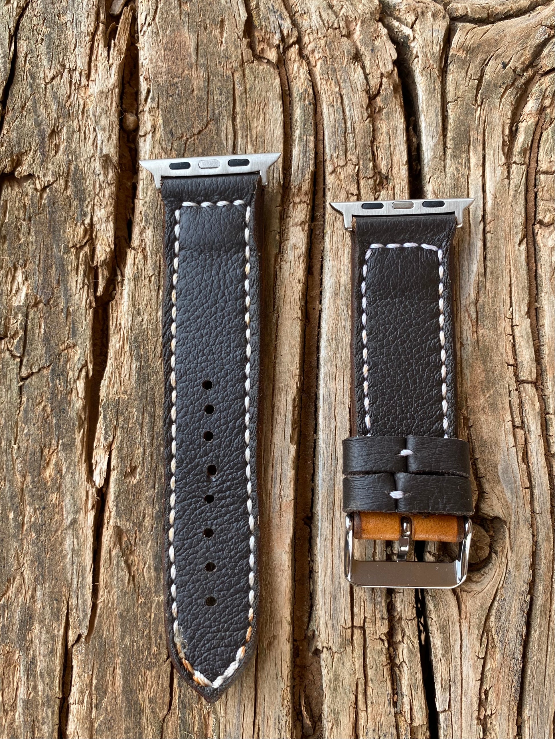 The size of this watchband is measuring approximately 5 1/4” to 7 1/4” with the hardware for a 42mm or 44mm Apple Watch.