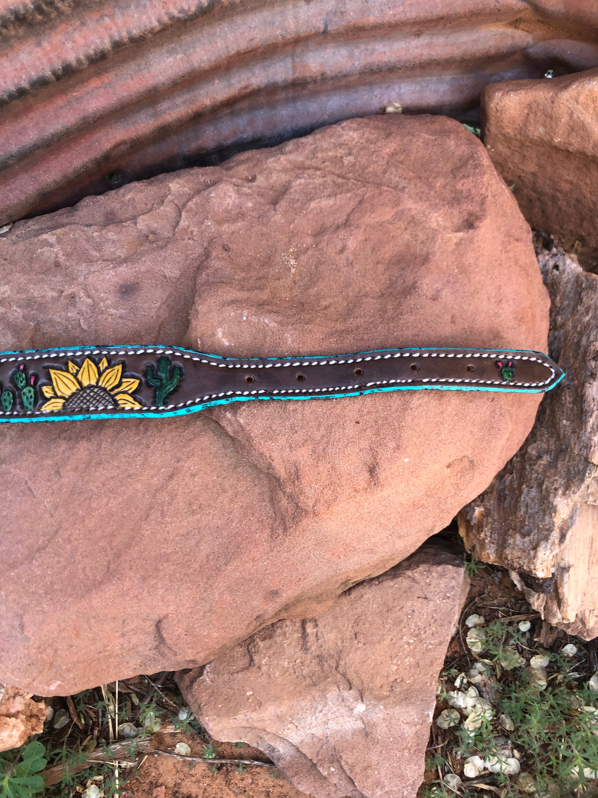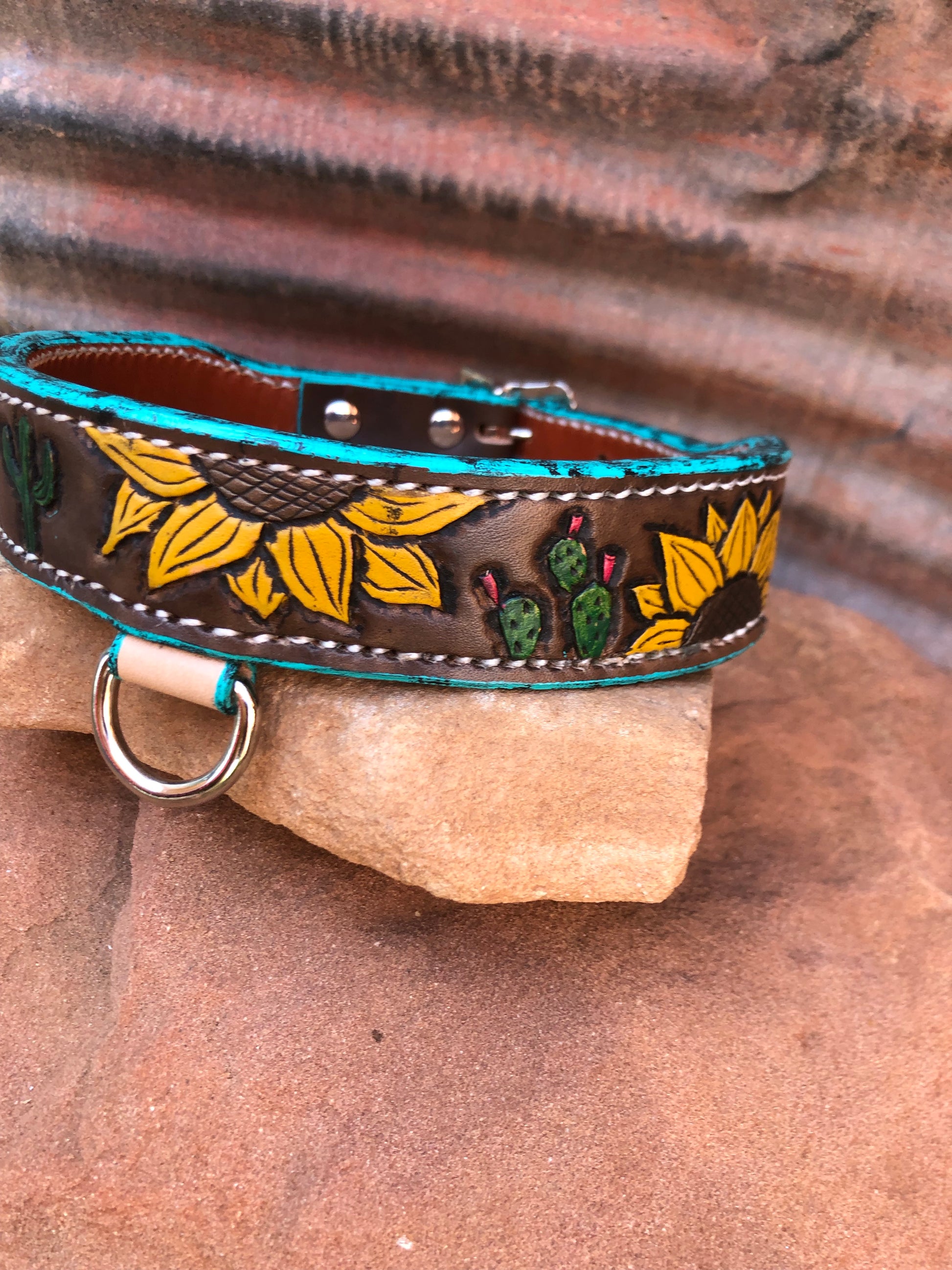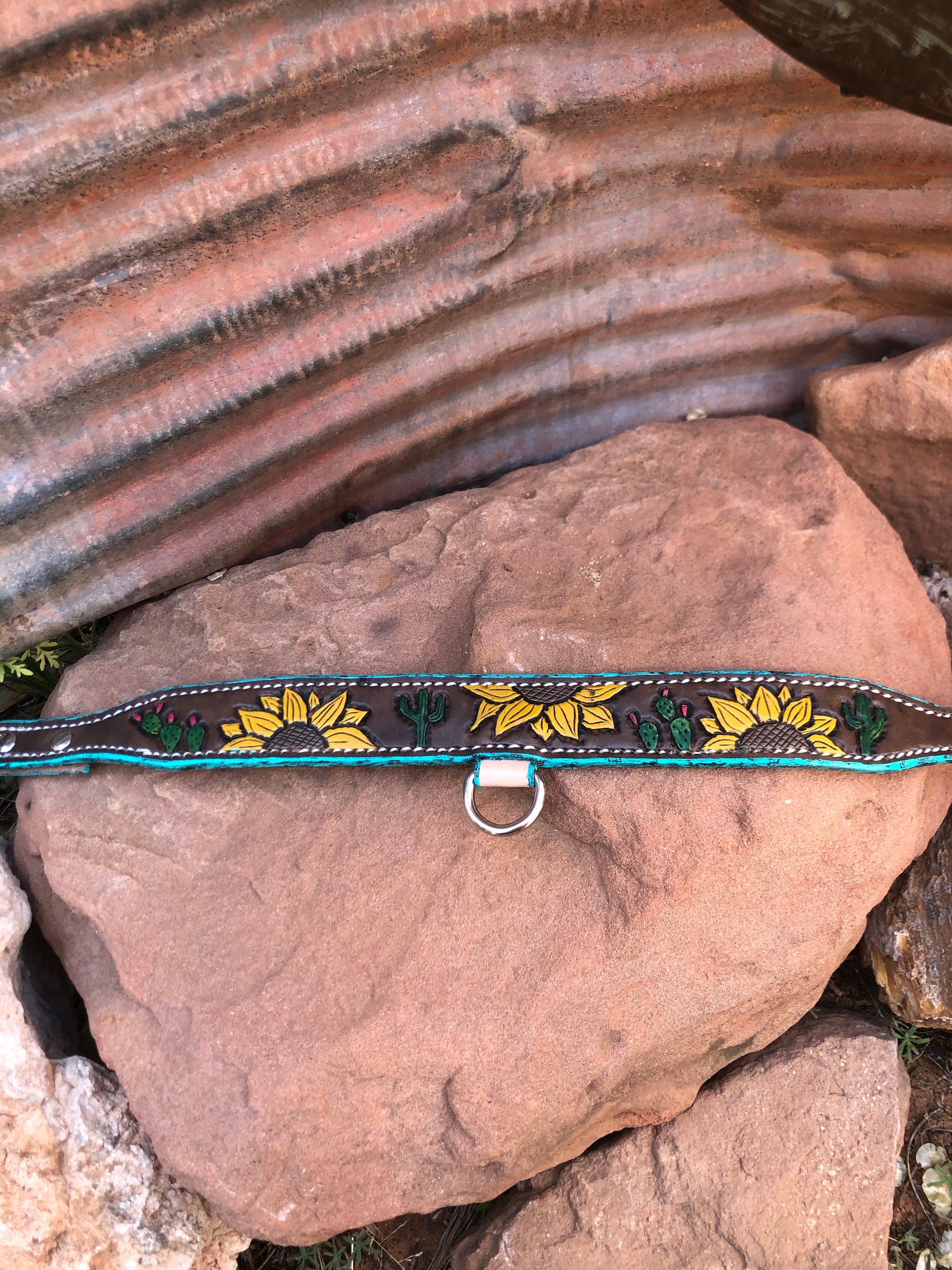Your pup will look adorable in this cacti and sunflower tooled collar.