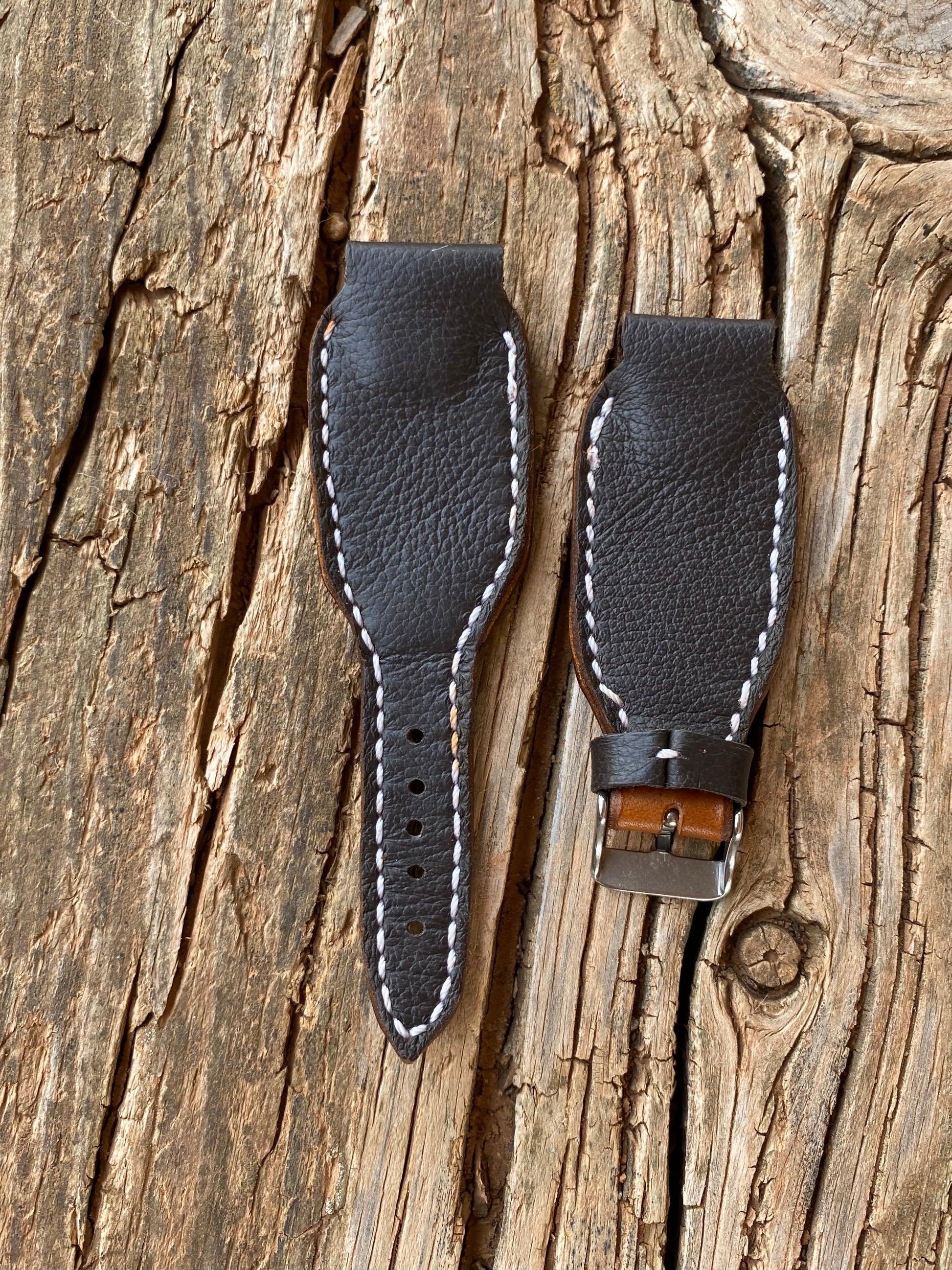 This watchband will be finished with hardware to fit the watch of your choosing. Add the type of watch you have in the notes at checkout. If you have questions on sizing or if I have the hardware for your watch email me at kippylousleather@gmail.com
