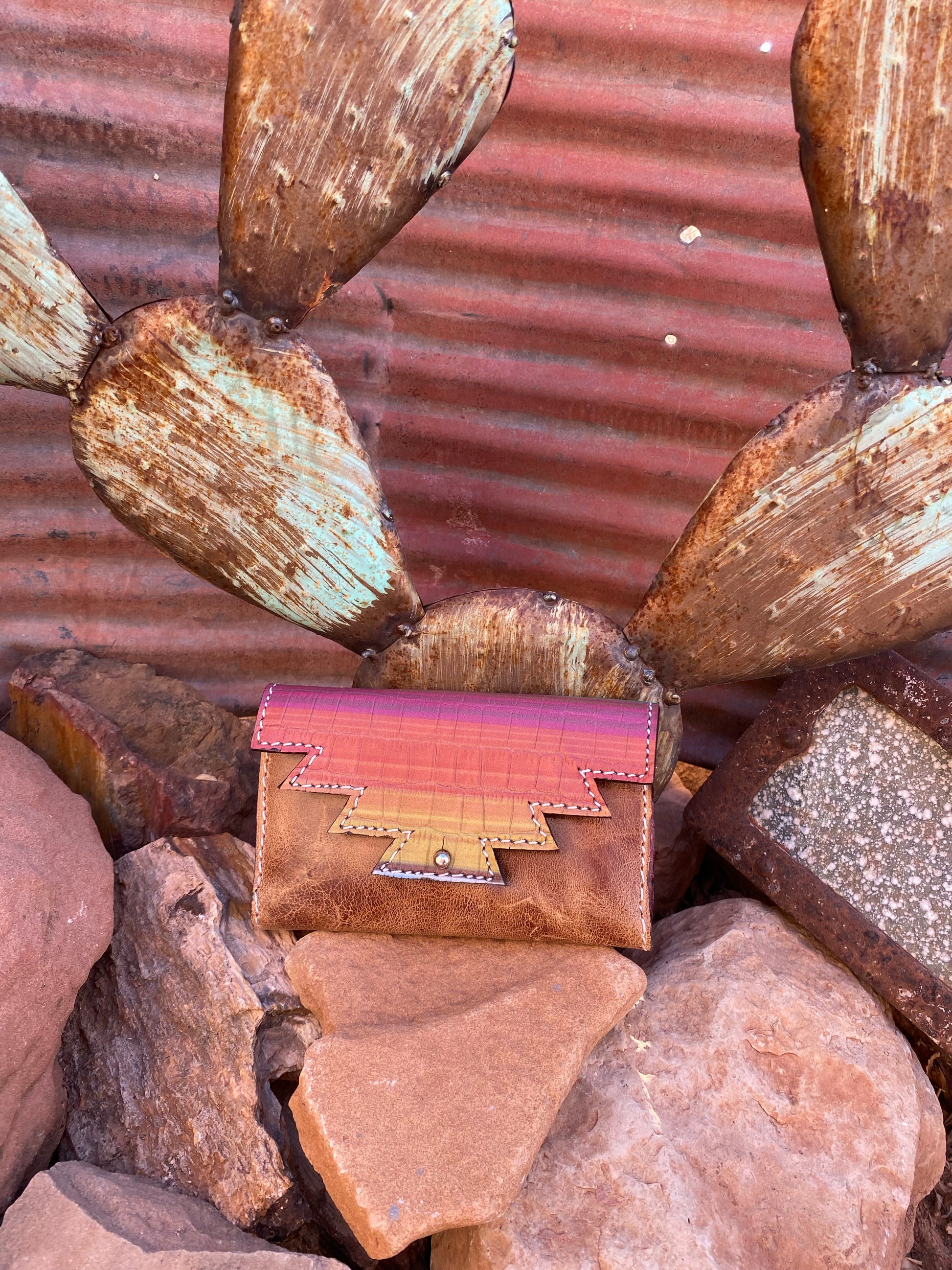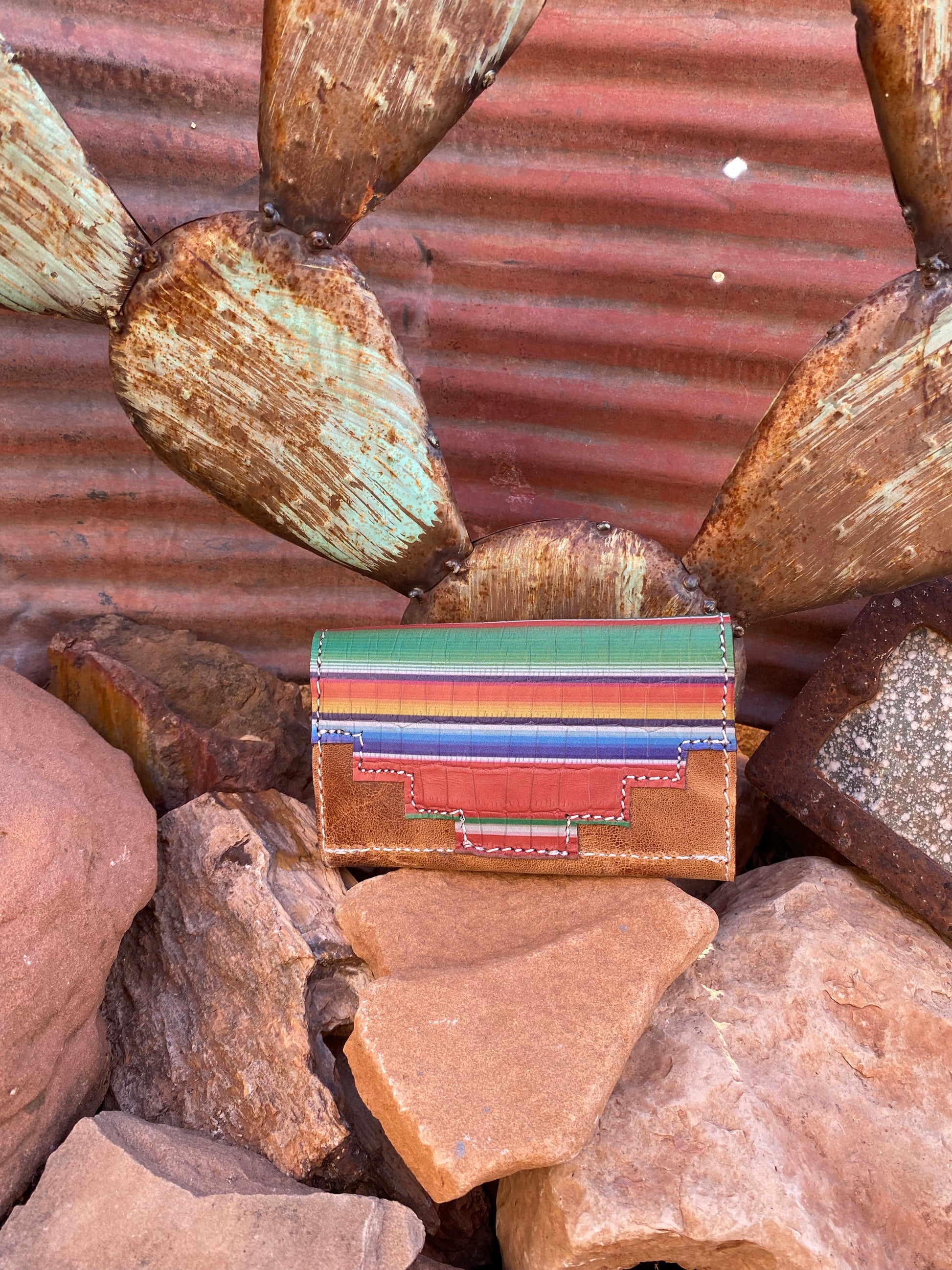 This wallet has 5 card slots, a zippered pouch, and 2 pockets for cash or a checkbook.